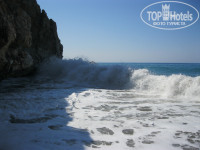 Плохой вход в море, когда сильные волны можно разбиться о камни.Мы ходили на дикий пляж, минутах в 30 от нашего отеля, там чище, нет камней, но всегда много народа.