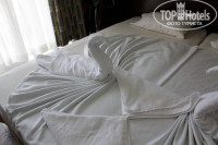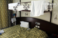 Номера в основном мягкоговоря не люкс, но вы же приехали на море а не сидеть на спине в отеле? Как вариант бросить на ночь тушку - вполне сойдет. В номер влазит 2 кровати и столик с зеркалом напротив + шкаф для одежды у входа. Санузел совмещенный с душевой кабиной. Нам достался номер 121 в корпусе А. на втором этаже с балконом на сторону бассейна. Белье меняли регулярно и убирали в номере тоже. Белье свежее. Единственный минус - не мыли пол.