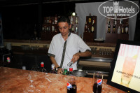 На территории отеля работает один бар. В "халяву" включено пиво ЭФЕС, кола, спрайт, фанта, белое и красное сухое вино, водка и раки (анисовая). Пиво и вино нормального качества. Я сухое вино не пью но кто его пил говорили что вполне нормального качества. Мы пили только пиво и колу. Из крепких напитков - брали с собой, благо дьюти фри в шереметьево дешево и сердито - виски 7 евро за литр, литр беллиса 17 евро. Бармены и вцелом персонал понимают по русски. За отдельные деньги - импортные напитки и свежевыжатый сок. Вечером можно в открытом ресторане (бунгало наверху) покурить кальян за 7 баксов. Выбор наполнителей - 2-3, но сойдет за эти деньги.