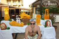 Были в отеле с 29 июля по 7 августа. Долго думали в какой отель поехать, я наверное месяц потратила на поиски и перечитывание отзывов, но какой бы ни был отель, сколько бы звезд там не было, все равно отзывы есть как хорошие так и плохие. Не знаю почему, но увидев и прочитав отзывы по этому отелю, мы решили что поедим именно в него, тем более что цена в 38000 на двоих за 10 дней, просто радовала. В аэропорту без задержек прошли регистрацию, и улетели в Турцию. Она встретила нас ласковым солнцем. Все было очень организовано, нас встретил Одеон, быстро все собрались в автобусе, и тронулись к отелю, наш отель был первый. Приехали мы около 11 часов, и так как заселение было после 14 часов, нам пришлось немного подождать около бассейна в баре, причем нам одели браслеты, и сказали что мы можем принять душ, обедать, переодеться и купаться, пока нас не заселят. Заселили ну где то в 14-20. Номера не большие, но очень уютные, вода горячая была всегда, кондиционер работал без перебоев ( очень нас спасал ), номер убирали каждый день, мы правда пару раз даже отказывались от уборки, мебель хорошая, вода из кранов не текла, в номере тараканов и всяких жучков не видели, есть балкон, окна выходили на заднюю часть отеля, и в окно смотрели мандаринки с дерева ) номер кстати был 211. На территории отеля есть бассейн, вода чистая, хлоркой не пахло, есть горка, но мы на ней не катались). Вечером решили прогуляться до моря пешком мин. 10 пеш., и не знали где наш пляж, поэтому прошли на ближайший, прошли спокойно, никто не остановил и не отругал что мы не на своем пляже. Море о нем много можно говорить, оно настолько чистое, просто кристально чистое, а какое оно теплое, ласковое, такое невероятно удивительное, волшебное...На следующий день наш гид Александра предложила приобрести экскурсии, мы решили не испытывать судьбу и приобрели экскурсии у нее, т.е компании Корал. Взяли 4, сначала поехали на ночную пенную дискотеку на яхте ( кажется 60 $ ) на человека, нам очень понравилось, можно было кстати купаться в открытом море, ночью, через 2 дня поехали на СВ.Николая,тоже около 60-65 $ с человека экскурсия вообще супперская, и на яхте покатались и в Храм сходили и на развалинный город посмотрели, следующая была на квадрациклах, 60$ с человека кто сидит за рулем и 40 $ тот кто сзади, первый раз катались и нам очень понравилось, правда я немного боялась) и последняя была в аквапарк кажется 65 $ c человека, в целом там не плохо, но я бы наверное не поехала бы если бы знала что горки там не очень интересные, очень однообразные. На одну из экскурсий нам сделали скиду 50 %. Забирали с отелей нас очень организовано, автобусы с кондиционерами, водители аккуратны, за что им особое спасибо. Кстати кто поедет на экскурсии, то не советую по дороге в магазинах покупать вина и сладости, так как в городе цена в 2 раза дешевле. так вино нам предлагали за 26 $ за бутылку а в городе в любом магазине оно стоит 10$, так и сладости по дороге они стоит 24 $ а в городе 10 $ причем они свежие. По поводу еды, очень было все вкусно, и даже супчики, и борщ был и солянка, и окрошка, салатики разные, вечерами рыбка на углях, шаурма, мы просто объедались. Посуда всегда чистая, персонал очень дружелюбный, всегда скажут Приятного аппетита. В отеле были Голландцы, поляки, русские, беларусы, украинцы,голландцы, вообще такие зажигалочки, все время веселые, жизнерадостные. Ан
