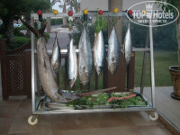 Питание в основном ресторане качественное, разнообразное. Очередей не заметил. Правда по мне было мало моей любимой баранины, что странно. Из мяса больше была курица, индейка, телятина. Рыбы было много. Один день раки. Рис вкуснейший. Зелени и салатов много. Фруктов выбор также большой. Отдельно отмечу сладкий стол. Лучший что я видел до сих пор в Турции. У входа в ресторан делали апельсиновый и грейпфрутовый фреш. Но один раз за завтраком была такая фишка - стоит очередь 3-4 человека, ждёт сок, а на столе стоят 2 полных графина. Я подхожу, спрашиваю - фреш- я-я, ну и наливаю, решил что в очереди стоят извращенцы, ждущие совсем фре-фреш, который ещё шевелится. Сел завтракать , попробовал - а это простой сок из пачки , а сверху косточки и мякоть. С тех пор делать нечего, стоял в очереди, чтобы при мне выжали. Обслуживание в ресторане в целом неплохое, носились как угорелые, но приносили напитки как когда, частенько нужно было подгонять . Но вот за ужином эта беготня честно говоря раздражала и не давала расслабиться. Вино в бутылках принципиально не разносили, поэтому нужно было ловить официанта, просить добавки. В Барут и Амаре за ужином - если двое заказали одно и то-же вино, приносили бутылку и ведёрко со льдом и всем было хорошо.