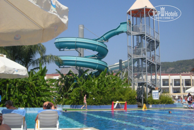 Отдыхали с дочкой (12 лет). В Даламане не первый раз, но ехали в другой отель на 2-ой линии, он был переполнен, поэтому попали сюда. С главного входа отель немного «непрезентабелен», но это только с главного. Приехали в 9.30, заселили в 12.00, мы успели позавтракать и искупаться. На территории 1 главное 3-х этажное здание (с номерами) и рассеянные по территории 3-х этажные бунгало. Мы получили 2-х комнатный номер в бунгало на первом этаже, с подробным описанием маршрута и картой (жаль без компаса)). Пол-плитка, но в жару это не напрягает, в ванной – джакузи, балкон с плетеными креслами, на креслах – подушки (оч удобно), в гостиной окно «витрина» (тоже оч приятно). Багаж доставили следом, а за 1$ чаевых гарсон поведал маленькие хитрости номера, в том числе и показал как пользоваться сейфом (многие наши туристы так и не смогли разобраться в устройстве).