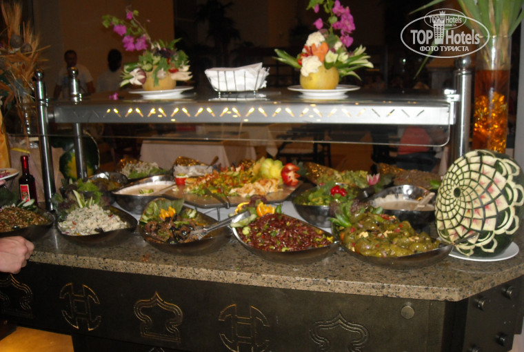 Питание: всё понравилось, из горячего каждый день 2 вида супов, большой выбор, мясо было всегда в разном виде, убивали только салаты, приготовленные из прошлодневных сосисек, не нравится - просто не берите, там другого полно! овощи, зелень, разные гарниры на выбор - всего в избытке, из фруктов были арбузы, дыни, яблоки, апельсины, бананы, хотя внешний вид последних двух оставлял желать лучшего, но тем не менее, вполне съедобно! выпечка супер! обилие кондитерских изделий, восточных сладостей. напитки - юпи, как и везде. и не надо кричать,что это пять звёзд - извините, пятёрки разные есть! езжайте тогда в отели RIXOS в Турции, там вам за 300000 соки будут наливать свежевыжатые, а тут, отдав за путёвку в 10 раз меньше, можно и 2$ заплатить за сок, если уж приспичит. Еда есть всегда! не нравится шведский стол - ходите в а ля карт рестораны по записи, их 6. Местный алкоголь не произвёл впечатления, он просто не лез, да и не надо было! пиво идёт на ура, и не пьянеешь. а зачем?