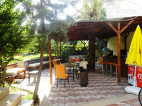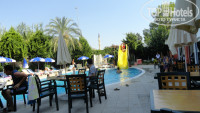 Еда: столовая в принципе просторная, но внутри очень душно, кондиционеры не работают. Шведский стол. Мяса нет, одна соя в сосисках, котлетах, колбасках, подавали курицу, рис, тушеные овощи, шаурму. Много зелени, помидоры после первого дня проживания я так и не рискнула есть, спас лоперамид. В основном ели огурцы, на завтрак вареное яйцо и вкусный батон с маслом. То, что не съели утром, подается в обед и ужин в переработанном виде, огурцы, помидоры и зелень заливают майонезом, колбасу жарят, макароны тоже идут в салат. Из фруктов был только арбуз. На сладкое давали кексы, пропитанные сиропом. Но я не люблю «мокрые» булочки. А они просто плавали в сиропе и получалась каша. Зато понравилось варенье из апельсинов, мед мы ели ложками, вылечивая ангину, полученную от кондиционеров. В общем, мы не голодали, тем более в такую жару есть просто не хотелось. За это время похудела как минимум на размер, одежда висела. Чему была несказанно рада )). В баре до 22-00 напитки бесплатно, охлаждались пивом, если так можно назвать (пиво Эфес мы брали в супермаркете), соки все разведенные, так называемые ЮПИ, пить не советую, гольная химия. Официанты все вежливые, оперативненькие, идешь, например, за кофе к автомату, приходишь, а твоей тарелки на столе уже нет.