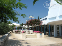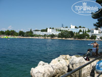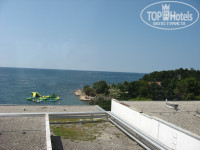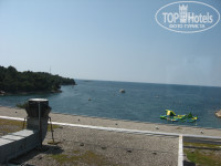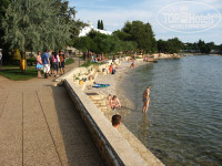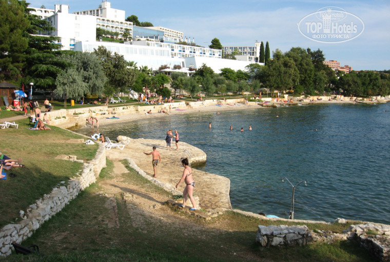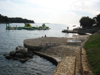 Пляж на любой вкус (галечный/каменистый/бетонная плита в окружении травянистых газонов с тенистыми деревьями). Просто посмотрите фотки на Гугле-Панорамио. Достаточно один раз увидеть. Прямо перед отелем пляж узкий и перенаселён – достаточно пройти немного дальше на мыс в сторону Дельфина или Парентиума – вода чище и народу меньше. Отель находится в бухте и если ветер не с моря – то вода спокойная. На пляже есть душ обмыться и кабинки для переодевания. Туалет только платный в ресторанах (если сил нет добежать до номера). Кстати о птичках – в отеле дресс-код: вход в отель в открытом купальном костюме запрещён (набросьте хотя-бы полотенце). И вообще: никто не заставляет вас купаться только рядом с отелем – все побережье Истрии к вашим услугам (вроде-бы пляжи везде общественные). На пляже для детей есть аттракцион - надувная платформа для плавания и ныряния. Рядом с причалом Поречского парома есть пункт проката лодок, катамарана и виндсёрфинга. Пляж постоянно патрулируется сотрудниками охраны (в красных футболках) и спасательных служб (со специальной собакой).