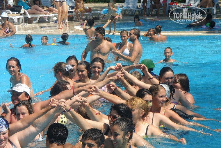 Анимация! Мы просто влюбились в ребят. Ахмед, Фати, Зимбабве, Вика, Нелля, Таня, Кристина и Саша! Ребята просто замечательные. Правда в последние наши дни, куда то они делись( мы очень расстроились. Они очень классно вели акваэробику, гимнастику, степ. Их вечерние анимации просто офигенные, мы очень много смеялись. С самого утра начинается работа аниматоров в бассейне у пляжа, бассейные игры всегда были очень веселые, так круто! В течение дня так же проводится дартс, водное поло, стрельба из ружья, на самом пляже воллейбол. Трудно остаться в стороне!)))