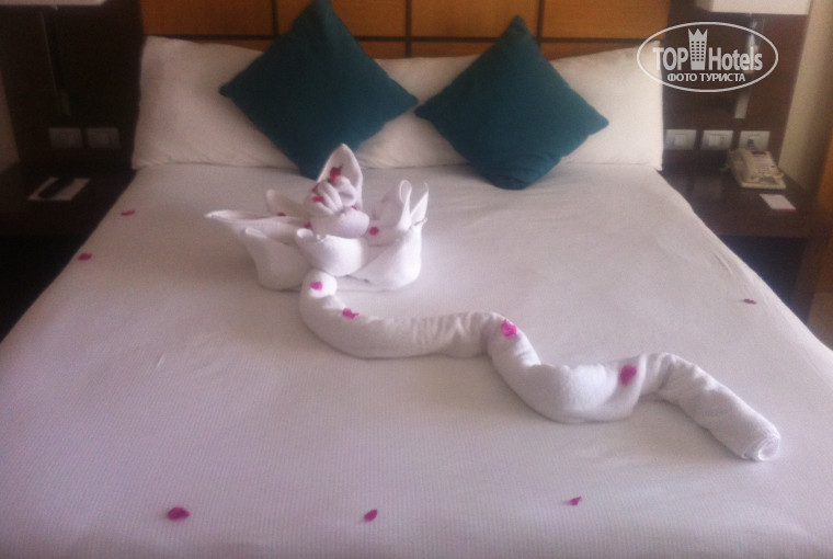Попробую кратко изложить об отеле) перед тем как ехать я прочитала кучу отзывов об отеле и на русских сайтах и на англоязычных,мнения везде расходились. Мне понравились фото отеля и я рискнула. Это был мой первый отдых с любимым человеком и я хотела чтобы все было идеально,именно так и получилось! Отель очень хороший, номера шикарные (мы жили в главном корпусе,а не бунгало, поэтому пожаловаться ни на муравьев ни на все остальное о чем писали жители бунгало не могу),номер идеальный ничего не отваливалось как писали другие туристы в предыдущих отзывах,нас сразу без всяких чаевых поселили в идеальный номер с прекрасным видом,даже носильщик нам сказал что номер один из лучших,убирались отлично,каждый день поделки из полотенец-сердца,павлин,тортик,цветочек и т.п.,персонал там обсолютно ненавязчивый в отличии от других многих отелей и арабов в городе,еда нормальная,единственное что салаты не очень вкусные, а так прекрасная выпечка, фруктов хорошее разнообразие (опять же в отличии от других отелей,моя подруга в соседнем отдыхала там кроме фиников и яблок ничего больше не было), у нас же были дыня,арбуз,виноград,яблоки,мандарины,финики. Море в 3 минутах ходьбы от отеля, в отеле все очень красиво начиная от "внутри" - номера,ресепшена,даже туалетов, заканчивая пляжем,бассейном, рестораны аля-карт шикарные, пантон хороший,рыбок много,мне очень понравилось. народу не очень много,поэтому спокойно и нет очередей и толкучек. Интернет беслпатный в номере, вайфай на ресепшене + компы в бизнес зале с интернетом тоже бесплатно,есть спа салон, салон красоты. Единственное что-нет анимации, вообще можно сказать,есть аквааэробика,волейбол,водное поло,вечером шоу с танцами восточными (но не каждый день),но мы ехали специально в спокойное тихое место,чтобы отдохнуть порелаксировать, когда хотели выезжали в нааама бей,там уже ходили в клубы, рестораны и веселились. Из ресторана кстати можно фрукты или сладкое брать с собой в номер или к бассейну,ничего не говорят)