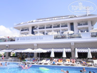 Отдыхали с 8 августа 2011г. по 17 августа 2011г. Отель находится в 15 минутах от центра Аланьи, ехать от аэропорта 2.5 часа, но отель стоит того , чтобы потерпеть дорогу. На ресепшен есть русскоговорящий служащий. На L этаже во всю стену аквариум , диваны интернет комната (бесплатно), биллиард (бесплатно),хамам 40 $. На 1 этаже атриум бар , диваны, ресторан,бассейн и подземный переход на море. На 2 этаже террас бар (русскоговорящий бармен Камиль, очень хороший парень), днем стоят шезлонги и столики, вечером проходят шоу. Вся обстановка в отеле новая, все работает без проблем. Питание отличное , разнообразное с 7 утра до 22 вечера.Шоу каждый день разное, очень интересная Турецкая ночь, шоу акрабатов. Анимация на немецком , но все понятно. На пляже все новое, шезлонгов хватает на всех. Нам очень понравился отель и обслуживание. Буду рекомендовать его своим друзьям и сами планируем на следующий год вернуться.