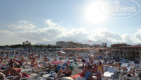 5. Пляж – ширина: 15 метров, часть под навесом, галечный и мелкий серый песок – «Привет Анапа» или «Ницца» кому как нравиться…. Пешком метров 300-400 (5-7 минут). Идти через перекресток (дорогу) либо мимо контейнеров с мусором и заброшенным отелем, либо мимо отеля «Сейлорз». Пляж нарезан между пятью –шестью отелями, на пляже полиция. На пляже устроен типа бар от отеля (человек с сумкой холодильником дает разные напитки, пиво, бутеры). С 15.00 до 16.00 в отеле дают мороженее бесплатно, его разносят и на пляже (шоколадное вкуснее). Рядом частное кафе- цены очень не демократичные. Туалет на пляже - $1. Есть душ.