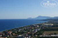 Номер дали на 5 этаже с "ломаной" крышей (как на мансардном этаже), с видом на горы, улицу с базаром и море. В принципе это пока один плюс. Т.к. номера были на первом этаже с видом на зеленую лужайку и 2-х метровым белым забором.