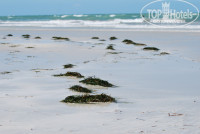 Территория не оч. большая, но ухоженная, чистенькая, поливается и чистится чуть ли не с 6 утра . Гуляющих по территории людей особо и не видно.В основном все у бассейна и на пляже. Пляж в 100 метрах от входа в отель, песочек супер, кажд. утро чистится. Море - волшебное, чистейшее, водоросли минимальны, или совсем нет. Замечали отливы несколько раз- море уходило метров на 15. Через часа три-четыре возвращалось. Во время отлива все бегают смотрят всякую мелкую живность, рачки, моллюски, рыбки) занятное мероприятие).