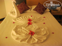 Приехали мы в 10 часов утра, а заселили уже к 12. За это время успели позавтракать и осмотреть территорию отелю.Всё ухоженно и чисто. Сам номер был хорошо прибран, холодильник, кондиционер и всё остальное работали без перебоев.Убирались ежедневно. За 1$ крутили всяких лебедей.