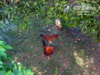 Территория вся в зелени, симпатично, гранаты, хурма, лайм над головой. В