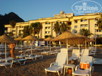 Недорогая, но по всем отзывам вроде как хорошая пятерка. Путевку взяли в Резиденс. Отдых испортили нам в первый день, когда поселили на знаменитый 5 этаж под крышей, на котором очень жарко, куда селят только РУССКИХ, (не одного иностранца вы там не увидите), комната 501, балкон которой выходит на мусорные контейнеры (мусорка приезжала в 6:30, грохот! Весь отель на ногах уже в такую рань!), когда вас будут заселять, это будет называться "вид на лес". Есть еще вид на море и на бассейн. Но "вид на бассейн" все также плавно переходит на мусорные баки! Кондиционер в этом номере работал на обогрев. Представляете, +40, и еще и кипяток дует... Сауна в номере! Как экономично! Когда человек уставший с дороги, двое суток путем не спал, все недостатки обостряются в несколько раз. Холодильник не работал вовсе. Бой, который носит чемоданы и показывает номера, со счастливым лицом поведал, что это совершенно нормально. Также, в номере стояла двуспальная кровать, хотя мы с дочерью носим разные фамилии, и по всем правилам нас должны были заселить в номер с разными кроватями. Тумбочка всего одна. Шкаф маленький. В ванной стоит простая ванная с занавесками, помывшись в которой на полу болото. Попросили заменить номер за доплату, еще ситуацию до конца не зная (про этажи). Ответили, что может быть переселят, и может быть завтра... Попозже пришли, какую то болванку вставили в кондиционер, и он стал дуть только на +18. Тоже не выход, чтоб простыть не надо никаких усилий... Сутки еле-еле выдержали...На завтра, ровно в 14 00 мы подошли на ресепшн, но нас там никто не ждал, и как будто в первый раз выслушали нашу просьбу. Дочь хорошо говорит на английском, поэтому с общением проблем не было. И опять никто не спешил на помощь. Тут, от куда не возьмись, появился мужчина, который прекрасно говорит на турецком, как позже выяснилось, и еще на 12 языках, помог нам поменять номер, да еще и на 3 этаже и еще и с видом на море! Хочу передать ему большое спасибо и огромный привет! Доплаты не взяли.))) Осадок конечно остался на весь отдых...И почему то на ресепшн с нами перестали здороваться. Номер на третьем этаже оказался более похожим на 5*. Хоть все также мы спали на двуспалке (т.к. при смене номера было условие: либо вид на море, либо односпальные кровати), когда мы пришли, на ней лежало покрывало, в комнате стильный интерьер, встроенный шкаф, холодильник работает, 2 тумбы, в ванной нормальная человеческая душевая кабина, даже в унитазе встроенное биде. Разница на лицо. И кондиционер более известной фирмы, который мы могли регулировать по желанию)