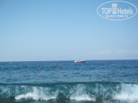 И второй не малый "-" это заход в море, ужасный - камни и плиты, но выход есть зашел и сразу плыви, только так, барахтаться у берега не получается, красный флаг у нас стоял все две недели.