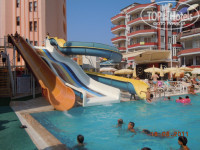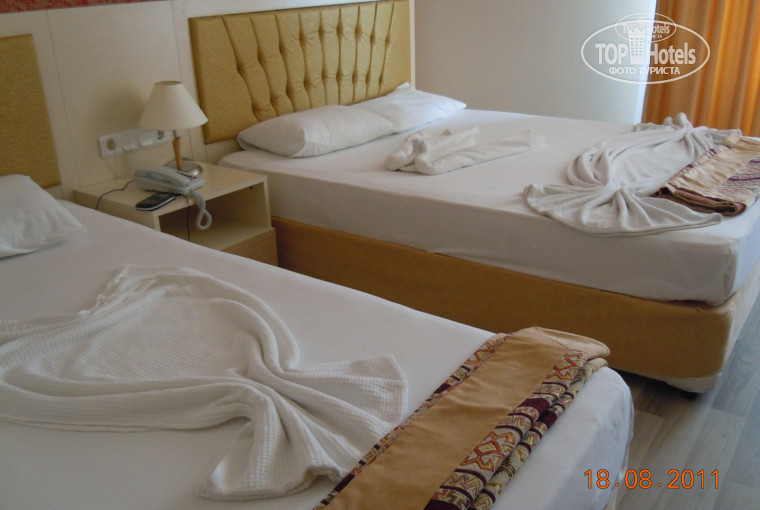 Отдыхали с семьей с 17 по24 августа от Санрайсз тур . Поселили нас в корпус " А " на 6 ом этаже.Номер ,душ,туалет все в идеальном состоянии .Постельное белье меняли каждый день .Заселили за 5 минут.Персонал доброжелательный .Аниматоры молодцы ,было весело.Море с волнами ,пляж гранитная крошка .При заходе в море каменная плита ,но отплыв от берега 30 метров купаться прекрасно.Бар на берегу,питание не плохое,конечно не ресторан ,но для хорошего кофе годиться .Экскурсии и баню покупали на улице , у гидов дороговато.Все очень понравилось!
