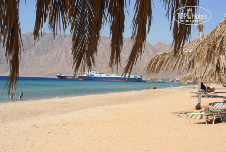 Пляж. Отличный песчаный пляж для детского отдыха. Как минимум метров 20 вы можете спокойно отпустить ребенка и следить за ним с берега. Если хотите что-то посмотреть, то можно либо понырять возле пирса, либо пройтись в сторону от пляжа метров 150-200. Можно заплатить пару баксов бедуинам, стоящим на границе с пляжем они отвезут Вас на верблюдах туда и обратно и покажут где кораллы. Ни на пляже, ни возле бассейна лежаки занимать не надо – они есть всегда. Да и вообще народа очень мало для такой территории и всегда было такое ощущение, что весь народ куда-то ушел, это было прикольно…