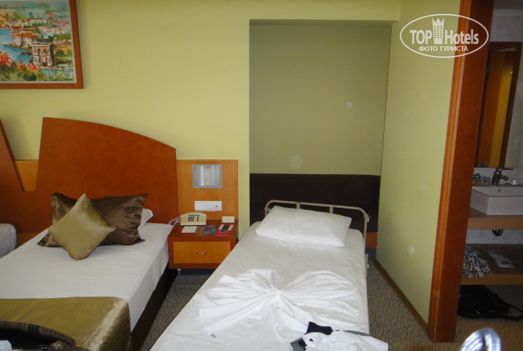 Отдыхали 26 августа -5 сентября .....сегодня приехали и решила написать отзыв....Больше в этот отель не поеду, хотя многое понравилось... зеленая территория и хорошая еда...... Из МИНУСОВ -это грязная посуда на шведском столе ( чистые стаканы со следами губной помады и чистые непромытые тарелки, особенно в парк размещении) и мы жили в ариканда корпусе- с муравьями ( "они ходили пешком") в номере и ужасно старой мебелью ( а так как были дети с 13-15 спали в номере) И последней каплей стала постоянная вонь канализации по вечерам , на балконе вечером не посидеть, охото одеть противогаз....И будьте внимательнее при бронировании платных ресторанов- пишут 5 евро , а потом перерасчитывают каким-то образом в лиры по курсу и получается больше сумма....вред какой то...