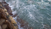 От входа в море мы ожидали худшего: тут же писали скользкая каменная лестница. Но ничего подобного лестница не скользкая, и даже не каменная(обе - не КАМЕННЫЕ). При входе в море мелкая галечка, дальше камни. Но море в этом регионе такой красивое!!! Чистое, теплое, прозрачное даже во время волн. Территория отеля маленькая, но достаточно ухоженная, чистая.