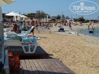 Пляж отеля от городского пляжа отделяет цепочка, развешанная на столбиках (см.фото).