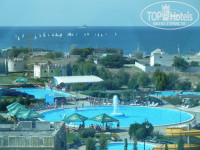 Номер шикарный – 42 кв.м.(реклама не врет)+ ванна ок.10кв.м.+ коридор, высокие потолки, ковролин красивый, светлый, панорамное окно на всю стену, вид был на аквапарк, бассейн и море. Все новое, уборка каждый день, даже когда не вешали табличку, все равно убирали, халаты, тапочки, наборы парфюмерии для ванны (пополняли), постель меняли чуть ли не ежедневно, безалкогольный мини-бар по приезду – бесплатно. Прекрасная шумоизоляция. В общем, за номер – 5+. Хотя можно было бы в ванной биде поставить, тем более что площадь позволяет.