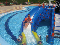 Детский бассейн произвел отличное впечатление: горки, грибок и конструкция с переворачивающимся ведром пришлись по вкусу малышам. Взрослые горки посредственные, но я не расстроилась, так как небольшой их любитель. Гораздо больше расстроил пляж: заход только с пантона, везде кораллы и камни, с ребенком мы купались только два раза, но так её ножки проваливась в кораллы и она увидела, как я изрезала в кровь свои (для себя не купила обувь сразу же, а без неё в принципе купаться невозможно). Вообщем на третий раз доча просто отказалась туда заходить, а я неделю ходила босиком и "враскоряк", а вечерами вся забинтованная. Радовали только крабы и рыбки. Благо бассейнов для взрослых тоже хватало.