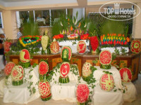 Питание. Питание выше всяких похвал. За 12 дней пребывания абсолютно не надоело, мою малявочку всегда находила , чем накормить. В конце отпуска было даже лень подходить к шведскому столу, настолько наелись за все это время)) Каждый вечер шеф-повар искусно вырезал из арбузов разнообразные фигуры - вид был просто потрясающий. Невозможно было поверить, что все это сотворил человек. В отеле основной ресторан, бар у бассейна, снек-бар на пляже, лобби-бар. А за 3-им корпусом местная жительница прямо при вас печет невероятные лепешки на специальной турецкой печке. Ммм...Официанты в ресторане работали оперативно!