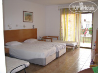 Нас 2 взр+2 детей, номер дали большой на первом этаже. Мебель старенькая (фото), но как говориться - "не за мебелью ехали". Кровати широкие. Есть незваные гости в виде муравьев. Время от времени уборщица их потчевала каким-то спреем, сутки потом их было не видно. Ползали в основном у раковины и у мусорного ведра (видно любили поесть и помыться) В номере есть холодильник (бесплатно), телевизор (2 русских канала), фен. На балконе своя мебель для отдыха.