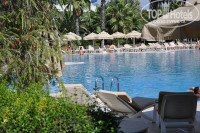 В Турции первый раз. Летали с Пегасом. В отеле отдыхали в сентябре 2010г. Все очень понравилось. Размещение прошло быстро полчаса правда пришлось подождать. Номер обалденный двухэтажный с джакузи на втором этаже. В номере убирали через день, в период когда уходили на море или к бассейну. Был бесплатный минибар при заезде сразу была кола фанта и вода. Воду добавляли ежедневно по бутылке а колу и фанту где-то через дней 5 новую положили. Сейф был в шкафу). клали гели для душа, шампуни, мыло, меняли постельное белье, полотенца и убирались Персонал отличный. Все чистенькие красивые приятнопахнущие) Все понимают по русски в одном месте только не поняли когда пытались узнать где забронировать ресторан, кот. 1 раз в неделю бесплатный. Мы пожалели что пошли)