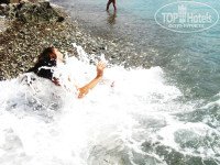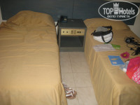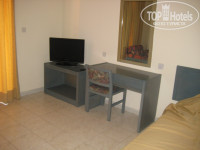 Отдыхали парой 18 09 – 02 09 2011. По приезду в отель я была разочарована, как потом оказалось – сама виновата. В отеле 2 типа корпусов и в них разные номера. STUDIO в старом, желтом, и –SUPERIOR STUDIO – в реновированном в 2011 году белом корпусе. А я в этом не разобралась, забронировала студио, уверенная что это стандартный номер, а супериор – 2-комнатный. И настраивалась я на фотки со свежим ремонтом. И как вы уже поняли, оказались мы в желтом.. Первые 2 дня я безуспешно пыталась поменять с доплатой номер – но это было нереально, высокий сезон, все забронировано. Потом мы смирились..конечно все не новое, но жить можно. Когда въехали – в нашем номере были 2 раздельные кровати, а между ними тумбочка, да еще и с проводами (представляет из себя допотопное радио и переключатели света). На ресепшн я категорически заявила – что нам нужна совместная кровать – и нам их все же сдвинули, как-то уладив проблему с проводами. Фена в желтом корпусе в номере нет, можно взять на ресепшн – залог 10 евро, для электроприборов потребуются переходники – 2 евро залог. Розетка в номере была всего одна, поэтому заряжать одновременно телефон или ноут и сушить волосы – невозможно. Сейф – бесплатный, за ключ – залог 10 евро, мы не брали. Оставляли ценные вещи в номере – все в порядке. Вид из номера у нас был – на заброшенную напротив стройку, как оказалось к концу отдыха – не заброшенная, видимо в сезон они не строят, работы возобновились 1 сентября. Если присмотреться – за стройкой море, поэтому можно считать, что вид у нас был на море)). Тут уже много писали про муравьев и тараканов – муравьи были, ооочень маленькие – около 2мм, тусовались почему-то рядом с розеткой, ну и раковиной. Они не кусаются и если не акцентировать на них свое внимание – не заметны. Таракана видели 1 раз – наверно 5см, вот это хуже, пришлось его уничтожить, больше мы их не видели. Вокруг отеля, как и везде на острове – много кошек, все очень худые, постояльцы их постоянно подкармливают. По-моему лучше жить на 2 этаже, как мы – потому что на 1 без труда запрыгивают кошки и всякие другие живности.