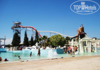 Ездили в аквапарк – приехали прям к открытию (10:00), билеты покупали там. На заметку – у туроператов продаются билеты в аквапарк по той же цене – 33 евро с открытой датой. Когда мы приехали – эти самые «счастливые» обладатели заранее купленных билетов выстроились в длиннющую очередь к отдельному входу. И в итоге мы зашли гораздо раньше их. При входе в аквапарк висит табличка на английском, примерный перевод – количество лежаков ограниченной, кто успел – тот успел . Когда зашли стал понятен смысл – все разбежались занимать места и тем, кто приходит позже – уже не достаются – для этой цели у них есть отдельно матрасики и можно лежать на газонах.