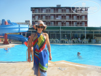 На территории есть турецкая баня, сауна - все бесплатно. Платить нужно только за дополнительные услуги - массаж, маски и пр. Бассейн с горкой - на фото видно. Воду на горке пускают с 10.00 до 12.00 и с 14.00 до 16.00. В бассейне проводятся игры (водное поло), аниматоры играют с детьми и на пляже, и на площадке.
