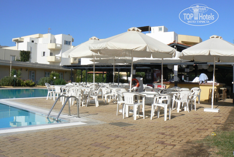 Общее впечатление об отеле положительное. До этого были в разных странах - Австрия, Израиль, Египет, Турция и т.д., есть с чем сравнить. Проживали в корпусе через дорогу от отеля, как пишут - " за магазином". Номер чистый ( благодарность за это работнику отеля Наталье, молодец. Хорошо убирает в номере) мебель новая, тишина , никто не беспокоит и не надо номера " с видом на море". За день так "накушаешься" и моря и солнца и т.д. и т.п., что номер становится единственным местом для спокойного отдыха в прохладе. Не слышно возгласов из бассейна и музыки анимации. Индивидуальный кондиционер в отличном состоянии. Такой незначительный недостаток в ванной комнате, как не очень удобный кран для умывания - мелочь по сравнению с остальными положительными моментами. Питание просто замечательное. Очень качественно и вкусно готовят. Достаточное разнообразие блюд, уверяю, что большее количество и не надо.Несколько раз в неделю предлагаются различные кухни - азиатская ( в которую входит в т.ч. и китайская), греческая. Довольно хорошие спиртные напитки- сухие вина ( белое, красное и розовое), крепкие спиртные напитки. Поверьте, толк в винах знаю. Очень хорошее пиво.Обстановка в отеле способствует полноценному отдыху. Много иностранцев ( не русских), которые ведут себя по - европейски, т.е. достойно и независимо. Никто не пытается посягать на Ваши права. Удобное расположение отеля на территории Крита. Очень близко расположены основные достопримечательности - Кносский дворец, остров Спиналонга, пещера Зевса, раскопки Малийского дворца и т.д. Для посещения этих мест другие туристы едут через весь остров - с западной окраины. А это довольно далеко. Пляж у отеля большой, песчаный. Когда море спокойное, можно купаться на этом пляже. Когда большая волна - рядом ( в 100-200 м.) песчаный городской пляж и пляж соседнего отеля. Платить за зонтики и лежаки не имеет смысла. Купили в соседнем магазине циновки за 3,5 Евро и загорайте целый день. Отель - твердая четверка. Рекомендую семейным ( и не только) парам. Останетесь довольны.