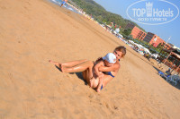 Пляж очень чистый, песочек, ни одного камня, море теплое, но все время идет волна. Лежаков всегда хватало, не надо занимать в 6 утра! Если даже нет свободных лежаков под тентом, то к вам сразу подходит бич бой и приносит сколько надо зонтиков!