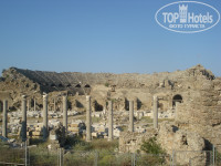 Отель находится в 30 минутах ходьбы от древнего Сиде, где сохранился старинный амфитеатр и остались колонны от дворца Аполонна. Путь проходит по вымощенной набережной. С одной стороны пляж с другой многочисленные магазанчики и кафе, некоторые с живой музыкой. Вечером приятно прогулятся. В амфитеатор ходили с утра, вход 10 турецких лир. Обменних долоров на лиры находится в двух минутах от входа в амфитеатор. За амфитеатром находится много развалин под открытом небом, куда каждый может придти и полазить. В наш отдых проходил фестиваль около колон дворца Апполона. Проходил он вечером, очень красиво было смотреть на ночное море с лунной дорожкой и слушать великолепную музыку.