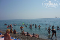 На пляже убирают плохо, кругом хабарики, в которых потом капают совочком детки. На пирс не пускают, даже фото - на 5 минут, если попросить, но нырнуть разок пустят. Рядом отели «Вилла парк» и «Меджик Лайф», если повезет с охранником, то можно туда ходить купаться- очень чистое море.