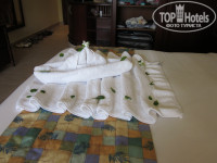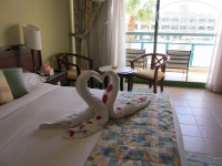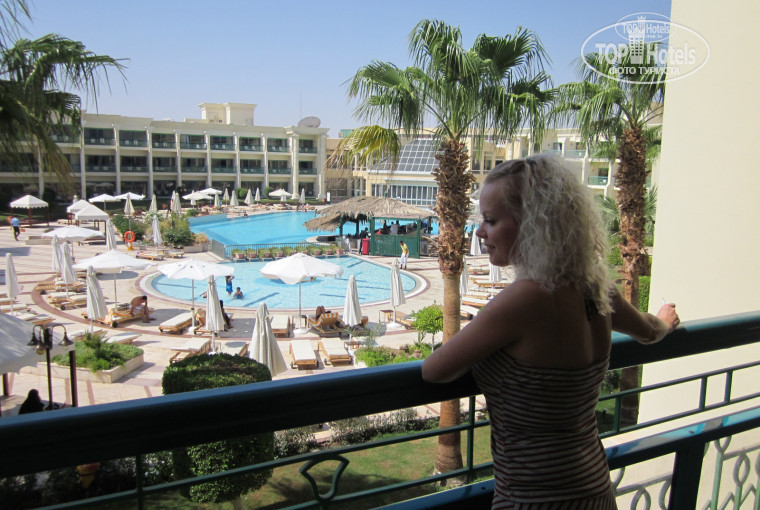 отдыхали в отеле с 14 по 25 сентября, заселение прошло не очень быстро, мы приехали в 5 утра, правда сначала пытались поселить на 2ю линию, сказали что на 1й линии нет свободных номеров, даже не помогали 20$ положенных в паспорт, но мы решили немного подождать в 10 утра нам дали номер в первом корпусе на 2 ом этаже, в номере было все супер, все работало , кондиционер работал в 3х режимах, так что температуру можно было настроить любую, вид был прямо на бассейн, мы номеру очень порадовались. Главный ресторан хоть и не маленький но когда приходило к открытию много народу , то иногда приходилось подождать минут 5-10 чтобы войти , но это не напрягало. Еда вполне приличная, нам понравилась, конечно кто любит омары и креветки, то там этого нет, а так очень вкусно и вполне разнообразно, мясо, курица, рыба что еще придумать. Ну а так то нечего плохого сказать я не могу про этот отель, персонал , если конечно не показывать что тебе все вокруг должны, очень даже дружелюбный и вполне приветливый, просто нужно чаще улыбаться и быть в хорошем настроении, ведь приехал отдыхать. На море всегда были лежаки , правда нужно было занимать с утра если нужен такой какой надо, а так то мест было полно, но мы всегда занимали лежаки рядом с баром, удобней ходить за пивом :) . За соседним пляжем был риф , мы туда ходили плавать с маской, один раз даже видели мурену, немного страшно было. на этом рифе очень много морских ежей, так что там лучше ходить в обуви. Ездили на дискотеку в бар Калипсо, очень понравилось вернулись в отель только в 5 утра, гид из Пегаса Ирина очень хорошая, все нам объясняла всегда как доехать и где можно что найти интересное, вообще ей отдельное спасибо нам она очень понравилась. Ходили в итальянский ресторан, один раз бесплатно, ничего хорошего, лучше бы в обычный сходили, поели пиццы и выпили там вина, больше там ничего хорошего, музыки нет , официант бесплатно видимо не любит обслуживать. Напитки все нам понравились, хотя кроме пива, рома , виски и колы мы ничего не пили, напитки вполне сносные, конечно может по градусам они и уступают нашим, но там и нельзя водку пить нашу ,я так бутылку которую в дютифри купил обратно и привез, не смог выпить там ее даже, просто невозможно на такой жаре пить , а так и в барах хватало выпивки, не надо было своего ничего брать. В магазинах на территории отеля можно было что то покупать, но нужно было торговаться , тогда цена опускалась до значений тех же что и за территорией отеля, зато не привязываются на территории отеля как за ней , идти вообще невозможно, когда ходили в Клеопатру то ходили по стороне где идут отели первой линии, потому что с другой стороны просто одолевают предложениями зайти в их лавку. В Клеопатре все цены фиксированные , можно рассчитываться хоть долларами, хоть их фунтами, и курс там лучше чем в отеле в банке, то есть если нужны сувениры или одежда , чемодан то лучше я посчитал покупать там, купили там еще один чемодан, потому что сувениры все не вошли в тот с каким приехали :) . Бассейн хороший но мелкий и маленький, для детей самое то, а взрослым только в поло поиграть :) ну а так охладиться можно, только после 6 вечера он закрывается и купаться нельзя , но мы пару раз купались ночью, охрана правда выбегала выгоняла, типа там химикаты какие то, но нам все равно мы же русские :) . Вообще все очень понравилось, может потому что на