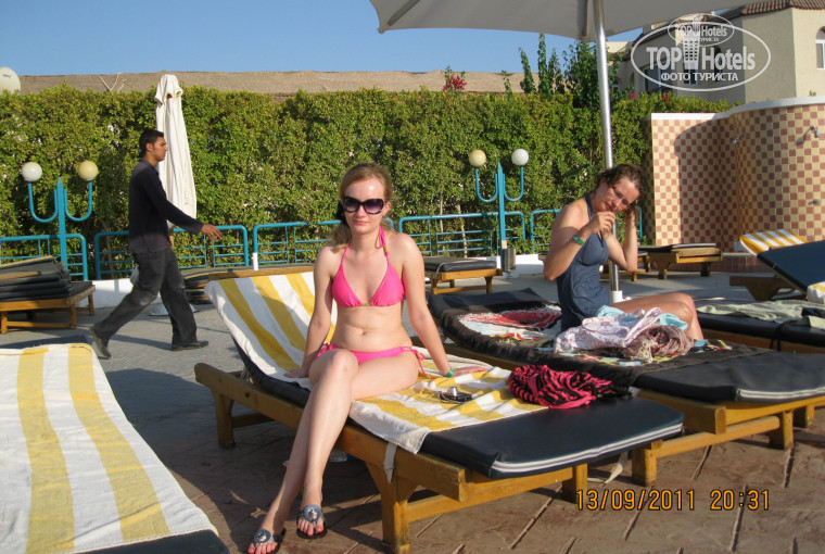 Я отдыхала в Египте первый раз и получилось очень удачно. Всё очень понравилось. Прилетели мы в 8 утра и нас без денег заселили (при обращении к администратору конечно). Поселили нас в дальнем корпусе. Номер отличный. Сразу встретили тёплые слова и приятные для женского самолюбия мужкие взгляды))) Ни разу за 10 дней нам ни кто не нагрубил, персонал вел себя достойно. Анимация в отеле мягко говоря никокая. Но дело не в аниматорах, а в пассивности отдыхающих. Почему то у нас был один аниматор Биоо, но он такой классный, молодчинка! Свою работу выполнял на отлично. Еда в ресторане всегда разнообразная и очень вкусная, повора стараются на славу. То что отель находится на горе и в город ведёт длинная лестница, ни сколько не портит впечатления. Лучше быть по-дальше от базароз и кафешек, так как ночью там шумно - город оживает))) Отель советую, мне очень понравился, хочу туда ещё. Алиде - девушка ненадёжная и неприятная. При нас её заменила другая девушка, к сожалению не помню как её зовут, она была более заинтересованной в своей работе. Да и зачем полагаться на чужих людей?... нужно самому быть на чеку и быть готовым к любым ситуациям, по крайней мере иметь при себе набор лекарств из дома, поверьте, лишним ничего не будет. Желаю приятного отдыха всем и кучу позитивных эмоций)))