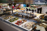 По питанию...Огромное обилие мясных и рыбных блюд,макароны,вермишель,картоша,разные салаты..а уж сколько сладостей было,мёд разный даже в сотах был.фрукты в изобилие... В общем впечатления самые хорошие... Единтсенное что нехватало так это борьща и наших супов...их мне что то не очень понравились...нужно эту позицию подтянуть.Да,попали случайно на 9 летие отеля,галла ужин,программа,салют.В общем отель понравился.
