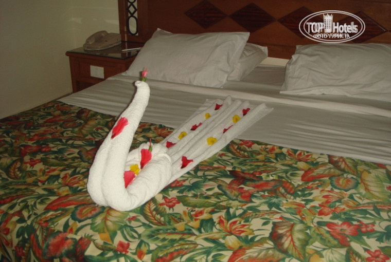 На следующий день после приезда у нас на кровати свернули павлина и принесли фрукты в номер, то ли за доставленные неудобства, то ли потому что мы молодожены. За такую красоту решили оставить доллар, после чего у нас 2 дня никто не убирался и больше ничего на постели не крутили)) Еще ближе к отъезду у нас 3 дня подряд не убирали и мусор даже не выносили, а так каждый день прибирались и меняли полотенца.