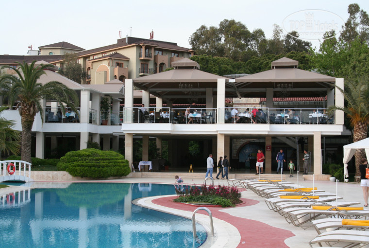 Столовая была как в закрытом помещении, так и на открытом воздухе с видом на бассейн и море вдали. Кормили вполне достойно, правда было много острой пищи и не было нормально супчика=), а в остальном всё вкусно и никаких расстройств желудка.