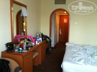 Номера не новые, но вполне чистые и без поломок. По просьбе на ресепшн переселить в номер с другим видом с балкончика, нам без всяких доплат и лишних споров предложили другой номер. Номер убирали ежедневно, полотенца меняли, ставили бутылку воды.