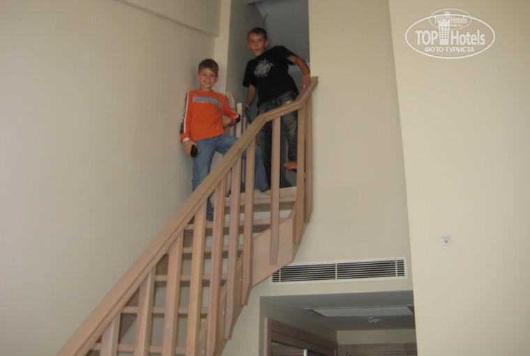 Номер нам достался на последнем этаже, где размещались двух этажные номера. Взрослые спали на первом этаже номера, а дети на втором. После первой ночи они проснулись все мокрые, т.к. кондиционер у них не работал (точнее он дул как вентилятор, который гонял просто горячий воздух).