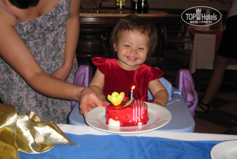 Отмечали день рождения дочки в итальянском ресторане - все было просто супер! Все было вкусно и красиво. Нам подарили тортик с одной свечкой, правда мы просили в ресторан, но нам его все равно принесли в номер. В средиземноморский ходить не советую, нам не понравилось.