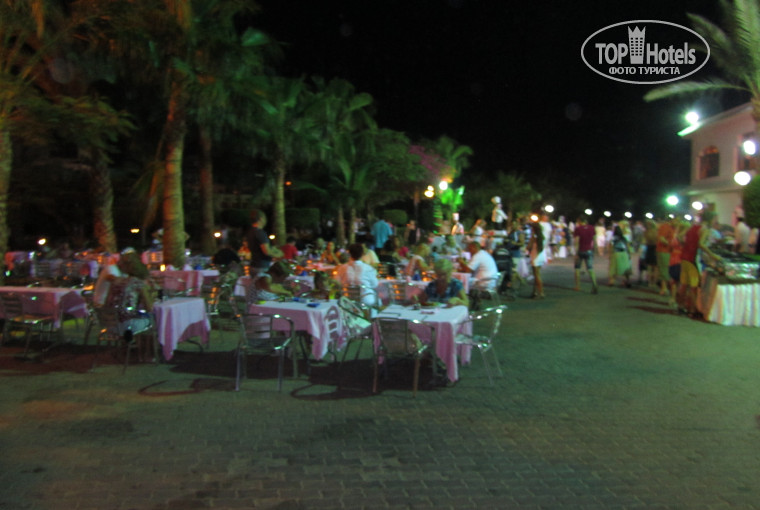Питание нормально, мы голодными не ходили. Всегда свежая выпечка и вкусные тортики, говядина, баранина и курица были всегда; мешанину-салаты мы не ели, зато всегда кушали свежие овощи(огурцы, помидоры, капусту, листовые салаты, зелень и тд) Единственное чего не хватало так это фруктов, обычно их давали нарезанными на кусочки и часто в каком то непонятном соусе, но иногда давали бананы и финики очень вкусные)) особенно вкусные были ужины, они ставили столы прям на улице, рядом ставили сцену(вообщем было круто) Пару килограмм мы с мужем за время отпуска набрали)) А так во всех отелях Golden 5 питание одно и тоже, но лучше всего всё же в Диамонде и Парадайзе.