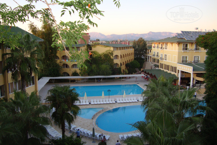 Начать, наверно, стоит с того, что это моё второе путешествие в этот отель!!! Отель располагается в живописном районе Сиде, совсем близко от моря. Рассчитан на большое количество туристов, начиная с молодежи и заканчивая пожилыми семейными парами. Оба раза мы с подругой жили в прекрасных номерах, находящихся в разных корпусах, так что было с чем сравнить! Вид из окна-сказочный!!! В номерах есть абсолютно все, что необходимо для комфортной жизни, особенно между морем и сном. На случай страшной жары работает кондиционер. В номере есть сейф.