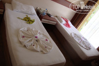 Номер наш располагался на 4 этаже, этаж последний, мансардный, номер от этого приобретал интересную обстановку и оформление. Балкон со столиком и стульями, шикарный вид. в номере 2 кровати на 2 человек, телевизор, холодильник, фен, кондиционер, тумбочки, столики, шкафы, вещи уместились все с лихвой!!! Места для передвижения достаточно, ванная с душем, всегда чистое белье и полотенца.