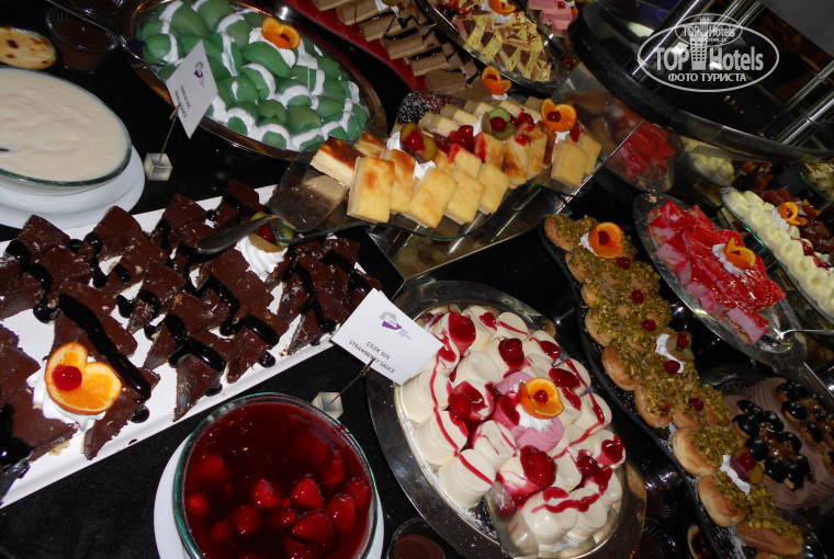 Питание было прекрасное. Все приготовлено вкусно, без особенных приправ, ничего острого мне ни разу не встретилось! Разнообразно как в основных блюдах,так и в десертах. Всегда было много всего диетического и детского (вареные куриные голени, пюре, кашки и многое другое) всегда много фруктов. Мясо разное и приготовлено разнообразно, баранина-потрясающая (и котлетками, и шашлычками, и кусочками в соусе и как только они ее не готовили)! Что касается других видов мяса и рыбы-могу сказать тоже самое. Все вкусно! По утрам свежевыжатьй апельсиновый сок, фрукты стояли как на завтраках, так на обедах и на ужинах. Свежевыжатый сок из апельсинов, яблок и моркови бесплатно пили в витамин-баре (делали при нас). Все соки в этом отеле пакетированные, не разбавленные! Мороженое предлагалось на ужинах, но через день, каждый день оно было в кафе у бассейна. Из морепродуктов давли почти через день раков, креветки были раза 2 за две недели. Рыбы разной полно было. Еда была круглосуточно и в любом количестве! В аля-карт мы не ходили, вполне было достаточно основного ресторана и баров. Одним словом, питанием мы очтались очень довольны!