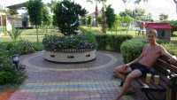 Территория отеля небольшая, но уютная по-домашнему, всем хватало места, в баре около моря ежедневно женщина пекла оболденно вкусные лепешки ммммммм....,территория постоянно мылась,вся живность зеленая постоянно поливалась,лежаков хватало на всех, но мы всегда лежали на своих полотенцах прямо у моря на песочке.