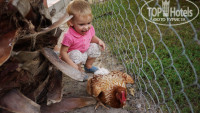 1)Територия - большая, зеленая, есть живность (горные козлы, курицы, индюки, гуси и фазаны) за забором. 2 недели гулял по ней и каждый раз интересно. Очень красиво. Тут - 5+. Дочка если б не отяянул - так все 2 недели наверное с козлами и котами провела :-)))